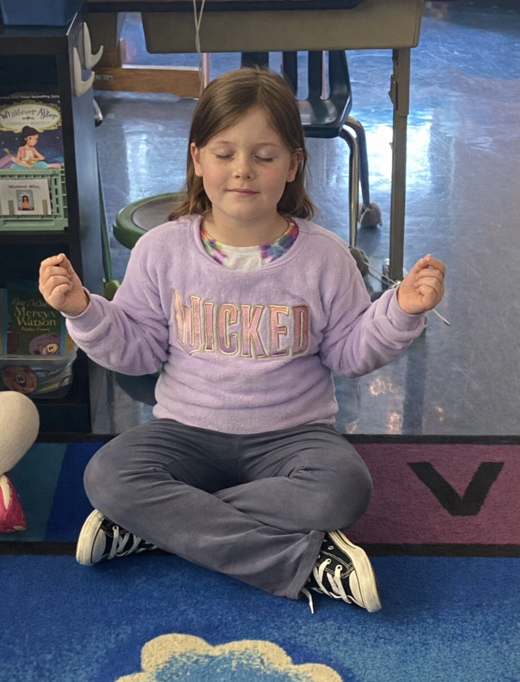 Second grader practices mindfulness.